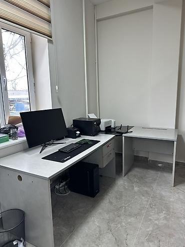 Офисный комплект мебели в светло‑сером цвете (ЛДСП): - Письменный стол