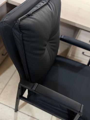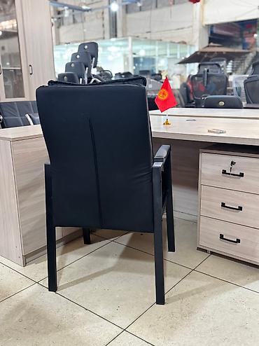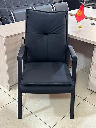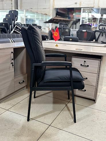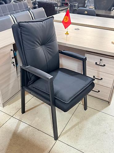 Офисный стул с прочной металлической основой черного цвета и обивкой из высококачественной эко-кожи, обеспечивающей стильный вид и комфорт.