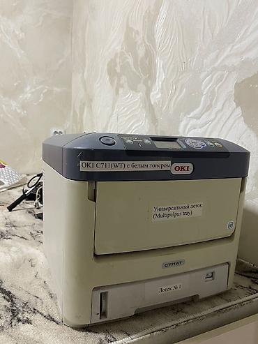 - Цветной светодиодный принтер OKI C711WT с белым тонером (WT). Панель управления с дисплеем, кнопки Menu/Enter/Cancel, индикация Power Save/Wake Up/Ready/Attention. Поддержка печати белым цветом для переноса на темные и цветные материалы.