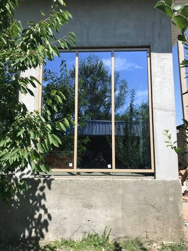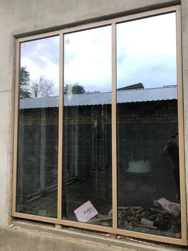 Металлопластиковая дверь коричневого цвета с белой рамой. Оснащена