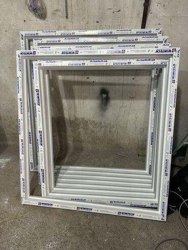 БежевыйКомплект из нескольких оконных рам WINTTECH белого цвета. Рамы изготовлены из ПВХ и предназначены для установки стеклопакетов. Подойдут для замены старых рам или для установки в новых строениях. Профиль имеет маркировку производителя.