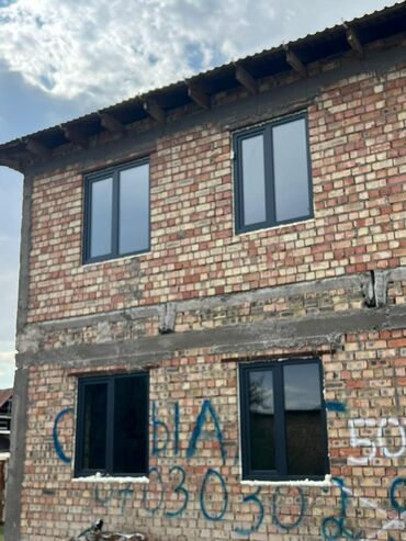 Трехстворчатое окно с рамой темно-серого цвета, оснащенное ручкой для открывания. Каждая створка имеет одинаковое остекление, обеспечивающее хорошее естественное освещение. Подходит для установки в...
