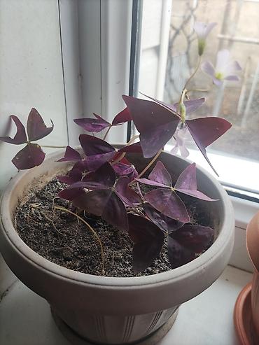- Два комнатных растения оксалиса: фиолетовый (Oxalis triangularis ‘紫’/purpurea) и зеленый вариант.
