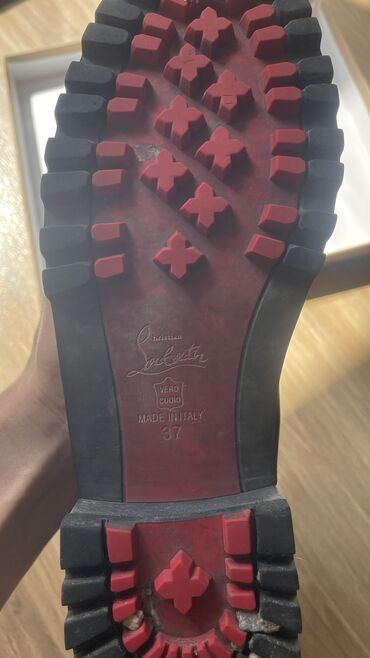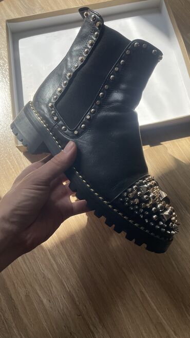 38 размер. Натуральная кожа. Турция. Подошва так задумана, имитация грязи. Носились очень мало, оказались малы, в идеальном состоянии.