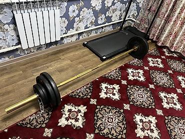 - Олимпийский гриф 20 кг , 220 см, посадочный диаметр 50 мм, вращающиеся втулки. Покрытие – золотистое (нитрид титана/латунного оттенка), насечки под хват. В комплекте пара пружинных замков.