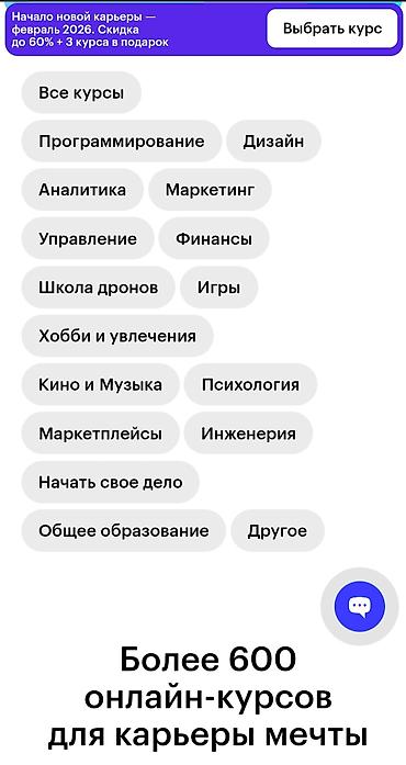 - Более 600 онлайн‑курсов для старта новой карьеры