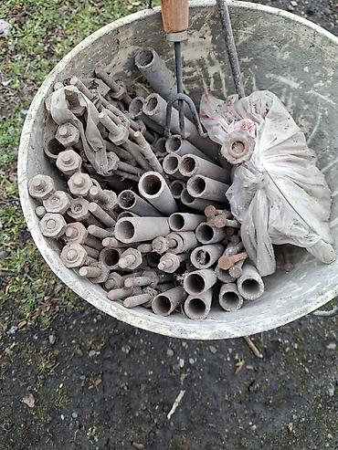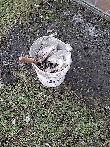 - Комплект состоит из стальных щитов/панелей и стяжных элементов (в комплекте множество стяжных шпилек с гайками и трубчатыми втулками — на фото ведро со стяжками).