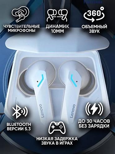 Внутриканальные наушники Lenovo GM2 Pro построены на 10 мм динамических драйверах, что позволяет получать качественный звук при прослушивании музыкальных композиций или во время игровых баталий. Lenovo GM2 Pro получили беспроводной чип Bluetooth V5.3 с низким энергопотреблением, 10 мм динамические драйвера и все это в необычном игровом дизайне. Установка графеновой диафрагмы и 10-мм динамика создает насыщенные и объемное звучание на 360°. В Lenovo GM2 Pro отлично прослушиваются басы, а звук отличается реалистичностью. Технология шумоподавления ENC убирает посторонние шумы, а качество передачи голоса через встроенные микрофоны соответствует стандарту HD. Поддерживается сенсорная система управления. Подключение к телефону осуществляется через модуль Bluetooth 5.3, что обеспечивает минимальную задержку при передаче звука. При использовании зарядного кейса суммарная автономность достигает 30 часов. Время его зарядки через кабель USB Type-C составляет 1,5 часа. Управление: • Увеличить громкость - 1 касание правого • Уменьшить громкость - 1 касание левого • Пауза/воспроизведение - 2 любого • Следующий трек - 3 раза на правый • Предыдущий трек - 3 раза на левый • Переключение режимов Игровой/Музыкальный - длительное нажатие на правый (в течение 2 секунд) Телефонные вызовы: • Ответ на вызов - два касания любого • Отклонить вызов - длительное нажатие на левый или правый (в течение двух секунд) • Положить трубку - два касания любого Сброс настроек: • Вынуть наушники из зарядного кейса и одновременно 5 раз нажать на сенсорные кнопки обоих наушников, чтобы LED-подсветка перестала мигать и горела постоянно, затем положить их обратно в кейс.