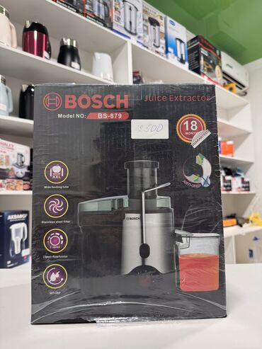 Соковыжималка bosch juice extractor BS 879 — простой и надежный помощник на вашей кухне. Мощность устройства — 1500 Вт, ее вполне достаточно для повседневного использования. Прибор оснащен двумя скоростями, позволяющими отжимать как мягкие, так и твердые овощи и фрукты. Мякоть задерживается сетчатым фильтром, выполненным из нержавеющей стали. А сок поступает в кувшин объемом 800 мл. Для жмыха предназначен большой съемный контейнер емкостью 1.5 литра.С соковыжималкой bosch juice extractor BS 879 вы можете отжимать фрукты или овощи целиком: широкая горловина диаметром 75 мм позволяет загружать плоды целиком, не разрезая их. Она очень простая в уходе соковыжималка. Все съемные части достаточно промыть под водой, а корпус из нержавеющей стали — протереть мягкой тканью. Соковыжималку очень легко собрать и запустить снова. Устройство имеет защиту от включения при неправильной сборке.