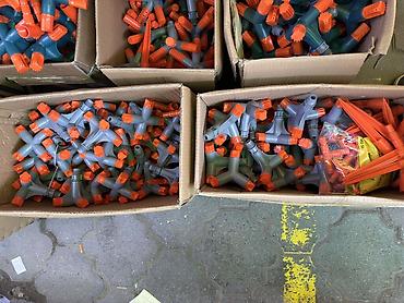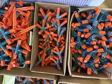 - Комплектация: отдельные распылительные головки и колышки (видны в коробках — можно подбирать нужную конфигурацию).