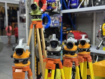 Оптические нивелиры на штативах для геодезии и строительных работ