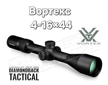 Что входит на изображениях: прицел Vortex Diamondback Tactical соответствующей кратности и объективом 50 мм или 44 мм, с тактическими барабанами и FFP-сеткой EBR-2C MRAD.