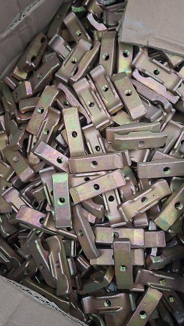 - Крепёжные элементы и закладные детали (стальные, с гальваническим покрытием): планки/палец-фиксаторы с резьбой и/или сквозным отверстием, массивные упорные «носики»/клинья с отверстиями под болт.