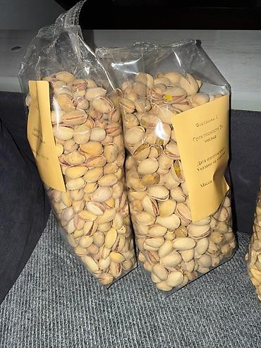 Орехи в прозрачных пакетах с этикеткой: Фисташки 1400 сом 1кг