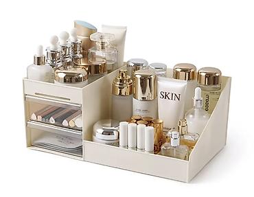 Идеальное решение для аккуратного хранения ежедневной косметики и парфюмерии в одном месте. Цвет — светлый (кремовый/молочный).