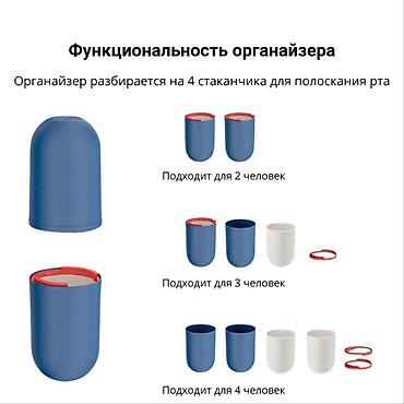 Органайзер разделяется на 4 стаканчика, для удобного споласкивания рта, после гигиенических процедур.