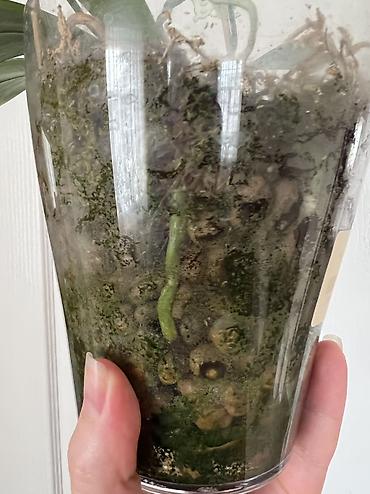 - Посадка в прозрачный горшок с влагоемким субстратом; корни хорошо просматриваются.