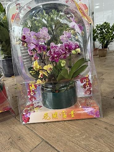 Комнатные орхидеи (скорее всего цимбидиум) в декоративной упаковке. -