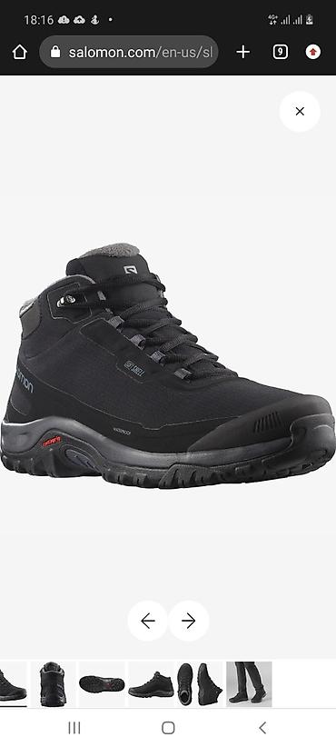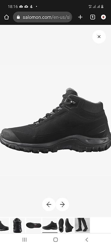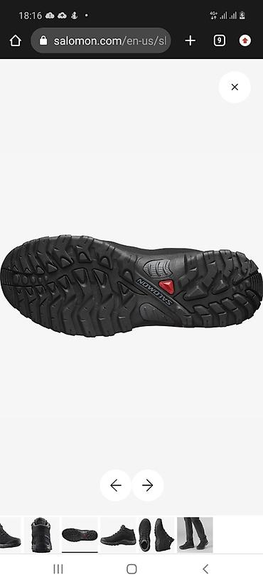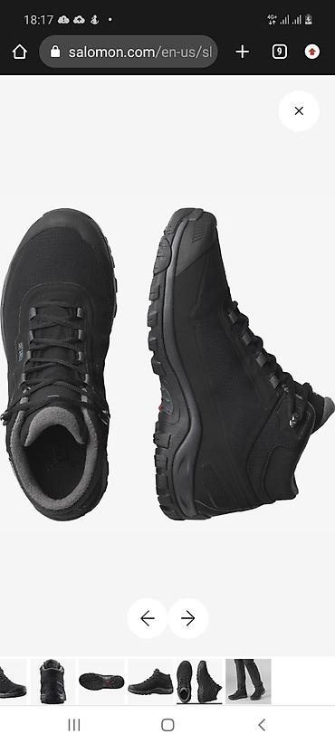 Кроссовки Salomon оригинал (средняя высота берца), цвет черный. б/у Особенности: - Верх: плотный износостойкий текстиль с усилениями из синтетики по носку и бокам. - Шнуровка классическая; петли с...