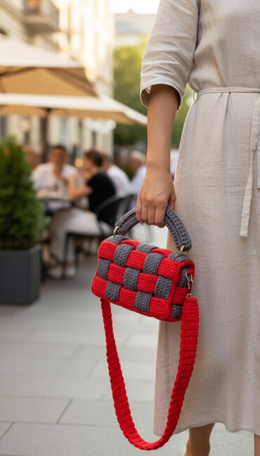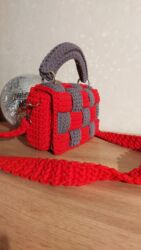 НовыйОригинальная сумка ручной работы.Сделана из трикотажной пряжи,очень приятная на ощупь.С ней вы всегда будете выглядеть стильной.Высота:16 см ;ширина 25см.