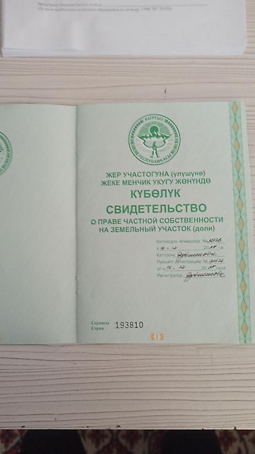 - Право: частная собственность, подтверждено свидетельством установленного образца КР.
