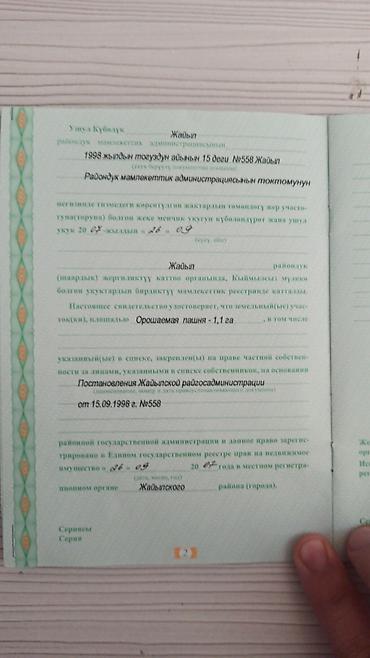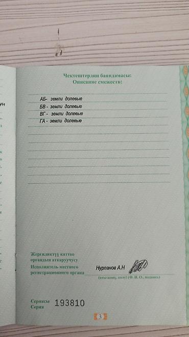 - Регистрация внесена в Единый госреестр прав, местный регистр Жайыльского района.