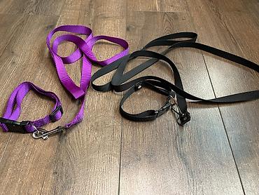 Комплекты ошейник + поводок для средних и крупных собак. Фирменный BONE Ширина ленты 2.5 см. Обхват ошейника максимум 56 см. Поводок длина стандарт ЦЕНА 600 сом за комплект НОВОЕ Есть и друг...
