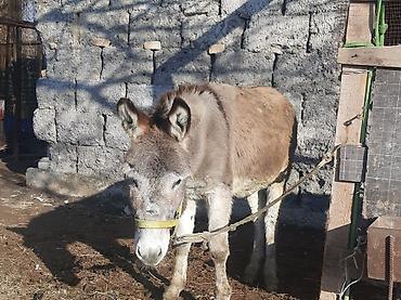 Осёл серой масти. - Порода/тип: домашний осёл, упряжной/вьючный. - Назначение: хозяйственные работы, перевозка грузов, пастьба, возможна упряжь под тележку или верховая езда с лёгкой нагрузкой. - ...