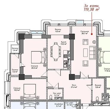 Просторная 3-комнатная квартира 119,47 м² на 7 этаже — удачное сочетание статуса, уюта и идеальной планировки для вашей семьи.