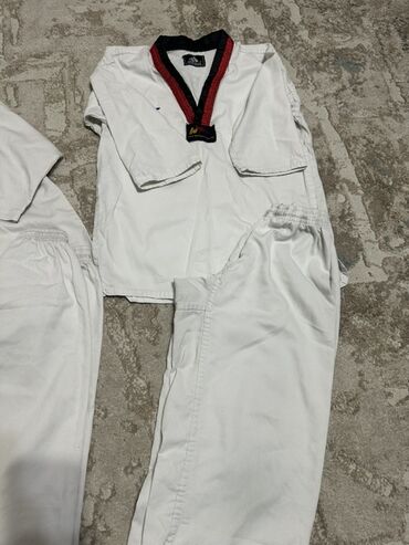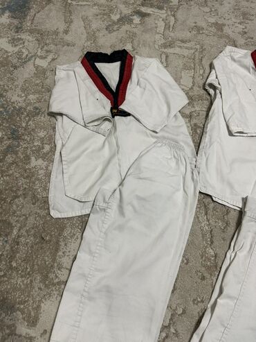 Материал: плотная хлопковая ткань (традиционная для формы тхэквондо), удобная для тренировок и растяжки.