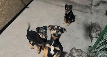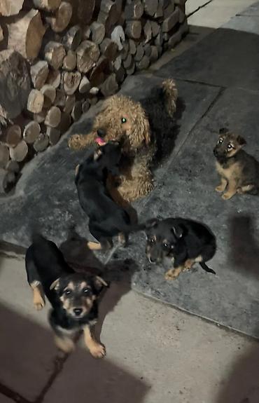 Отдам даром щенки метисы, короткошёрстные и среднешерстные, окрас преимущественно чёрный с подпалом и рыже-палевый. На фото – помёт от собаки среднего размера с жёсткой шерстью.