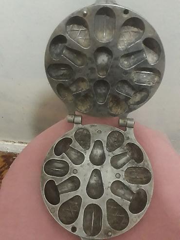Отдам одну советскую печеницу б/у,в нормальном состоянии. Нет пластмассовых насадок на ручках. Надо держать рукавичкой или прихватом. Получается целое песочное печенье : орешки,грибы,шишки. , за 5 кг сахара.