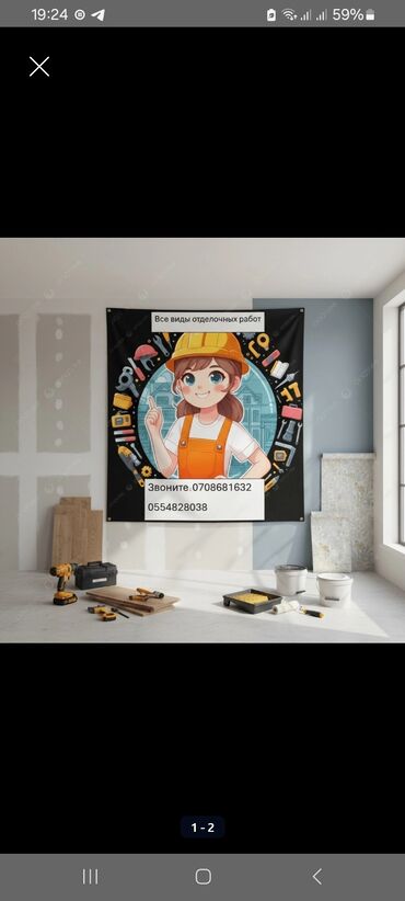 Мастер строитель предлагает свои услуги: 1.Укладка кафеля. 2.Укладка ламината . 3. Монтаж гипсокартона. 4.Монтаж гибкого мрамора. 5.Клею обои. 6.Шпаклевка стен,региля и колон. 7.Покр...