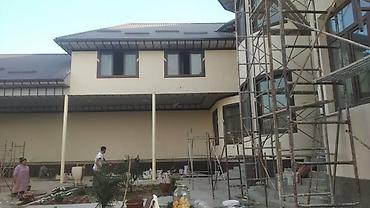 - Наружные работы: фасадная отделка частных домов, подготовка и выравнивание, утепление, декоративная штукатурка и окраска, оформление откосов и цоколей.