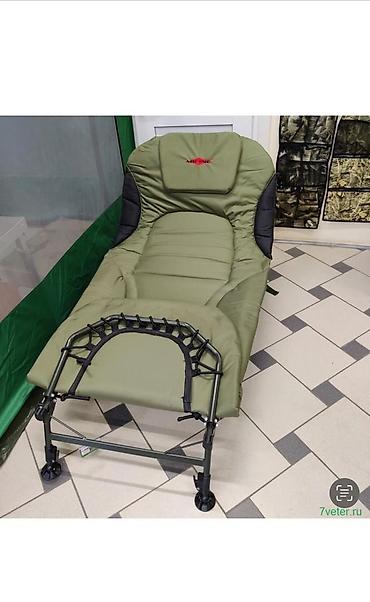 Отличная карповая раскладушка с усиленным каркасом. Все ножки регулируются по высоте, что позволяет устанавливать кровать на неровном грунте. Наклон спинки регулируется в диапазоне 180 градусов. Цвет - зеленый. Мягкий матрас, съемный подголовник, надежные материалы и удобная конструкция. Легко устанавливается.