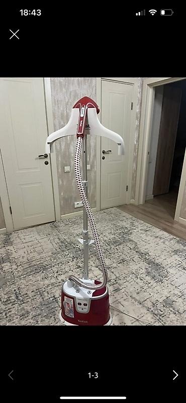 Напольный отпариватель Tefal для одежды с вертикальной стойкой и плечиками. Особенности: - Мощная паровая станция с напольным резервуаром, гибким шлангом и вертикальной стойкой. - Встроенные плечи...