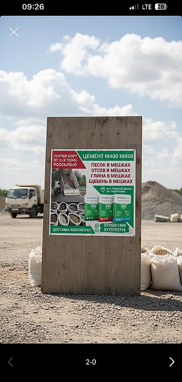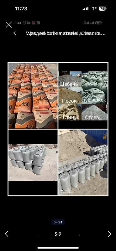 Продаю Цемент Кантский,Казакский м400 м450 ,Отсев в мешках,Песок в мешках, Глина в мешках,Щебень в мешках +Доставка по городу,Услуги:подъем на этаж,Портер такси,вывоз строительный мусор и бытовой ...
