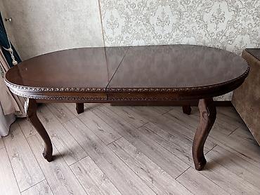 - Декор: фигурная резьба по кромке столешницы и на изогнутых ножках.