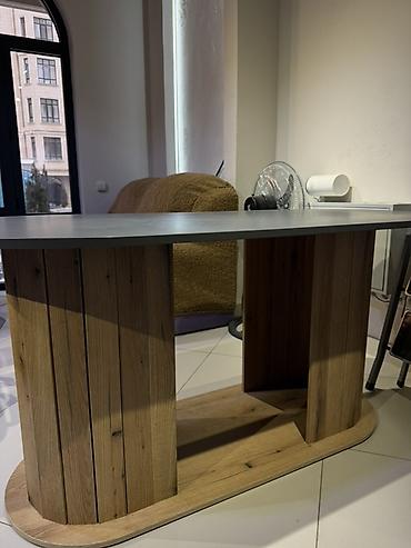 - Дизайн: современный, лаконичный, с акцентом на натуральную фактуру дерева; уместен в гостиной, переговорной, ресепшн, шоуруме, кухне-острове или барной зоне