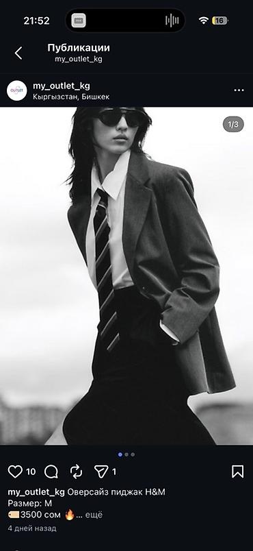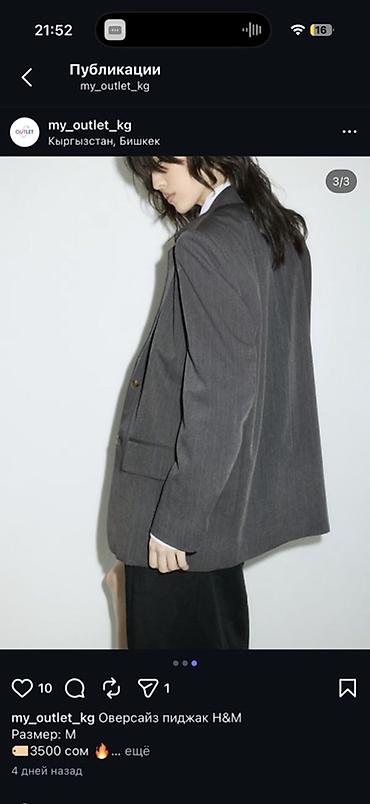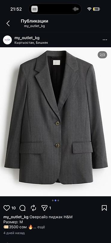 Женская одежда — несколько позиций. 1) Пиджак с абстрактным принтом в фиолетово-серых тонах, приталенный крой, лацканы, застёжка на пуговицы, боковые карманы-листочки. Размер: M Цена: 750 сом 2) ...