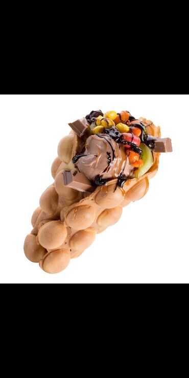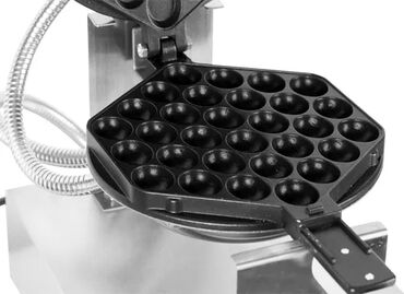 Вафельница позволяющая получить оригинальную выпечку пузырчатой формы. Такое кондитерское изделие легко свернуть трубочкой или конусом, наполнить кремом, мороженым, взбитыми сливками, фруктами и любыми другими начинками Оборудование применяется в кафе, бистро и точках продажи фаст-фуда. Вафли такого типа могут стать дополнением к меню десертов или основным блюдом заведения. Купить вафельницу для гонконгских вафель выгодно для привлечения большого количества клиентов, поскольку эта закуска стремительно набирает популярность