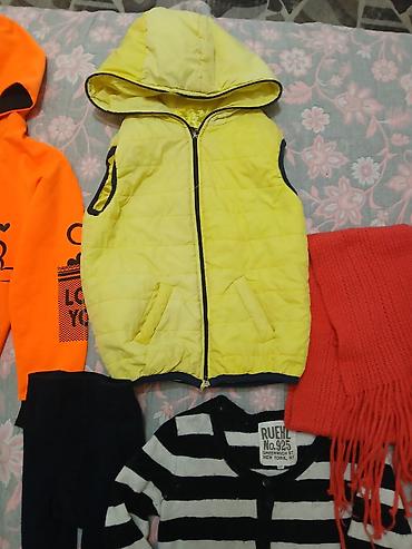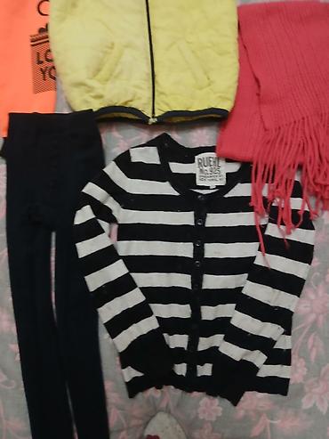 Детский комплект одежды для девочки 4 года . Цена символично: все платья за 350сом ;джинсы с кофтой 250сом ; безрукавка со спортивными за 100сом там пятна есть ;остальные бесплатно .