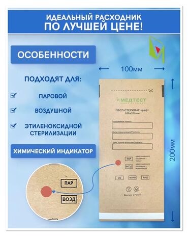 Стерилизационные крафт‑пакеты (бумажные пакеты для сухожара, пара и газа) - Назначение: упаковка и стерилизация медицинских и косметологических инструментов; поддержание стерильности после обработ...