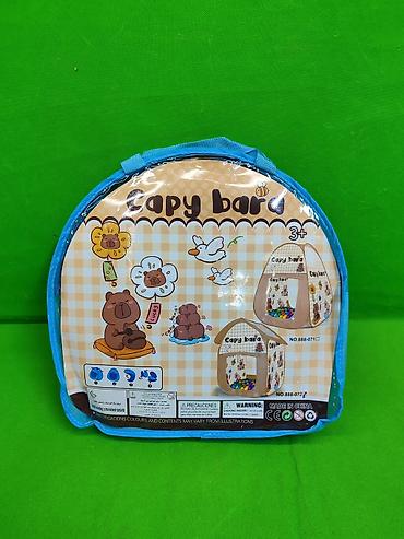 Особенности товара: большой палатка в стиле Капибара, сделана как домик, есть окошки сверху и дверца, палатка на пружине, легко разворачивается и заворачивается, можно установить на улице и дома👍