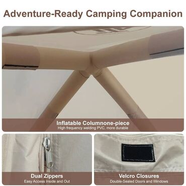 Представляем вашему вниманию надувную палатку, идеальное решение для активного отдыха и путешествий. Эта палата сочетает в себе компактность, легкость и простоту в установке, что делает ее незаменимым атрибутом для кемпинга, фестивалей или просто отдыха на природе. Уникальная конструкция позволяет быстро надувать и сдувать палатку, обеспечивая вам больше времени для наслаждения окружающей природой.