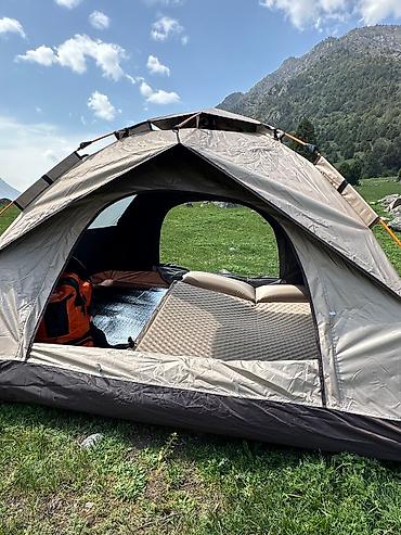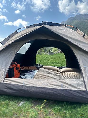 Аренда палатки. Треугольная палатка — водонепроницаемая и солнцезащитная, быстро и удобно устанавливается за несколько минут. Оснащена москитными сетками и окнами для проветривания и комфортного ...