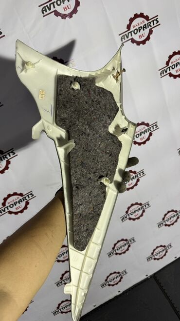Серая пластиковая накладка на стойку кузова автомобиля. Подходит для использования в качестве замены поврежденной или отсутствующей детали интерьера. Имеет крепления для установки.