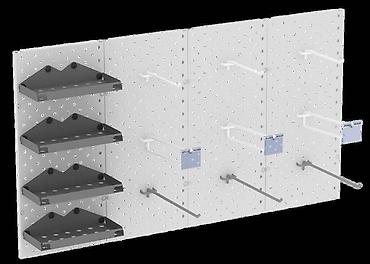 Перфорированные панели возможно установить на любое свободное место в различной компоновке (стена, колонна, торговое оборудование и тд)
