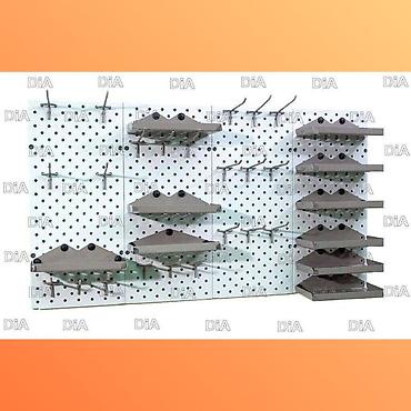 Перфорированные панели возможно установить на любое свободное место в различной компоновке (стена, колонна, торговое оборудование и тд)меет большой ассортимент различных комплектующих, что расширяет область применения.