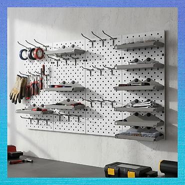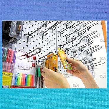 Перфорированные панели возможно установить на любое свободное место в различной компоновке (стена, колонна, торговое оборудование и т.д. )имеет большой ассортимент различных комплектующих, что расширяет область применения.